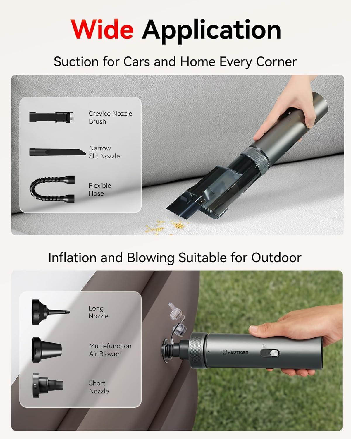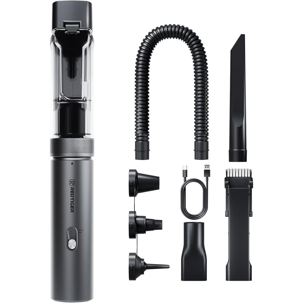 Get more for your money with our exclusive bundle deals on REDTIGER Car Vacuum Cordless, 21000PA Portable Handheld Vacuum Up to 70 Mins Runtime, 3.5H USB-C Fast Charge, Lightweight 4 in1 Mini Hand Held Cleaner Power for Car Home Outdoor Camp Pet Food Black and accessories.