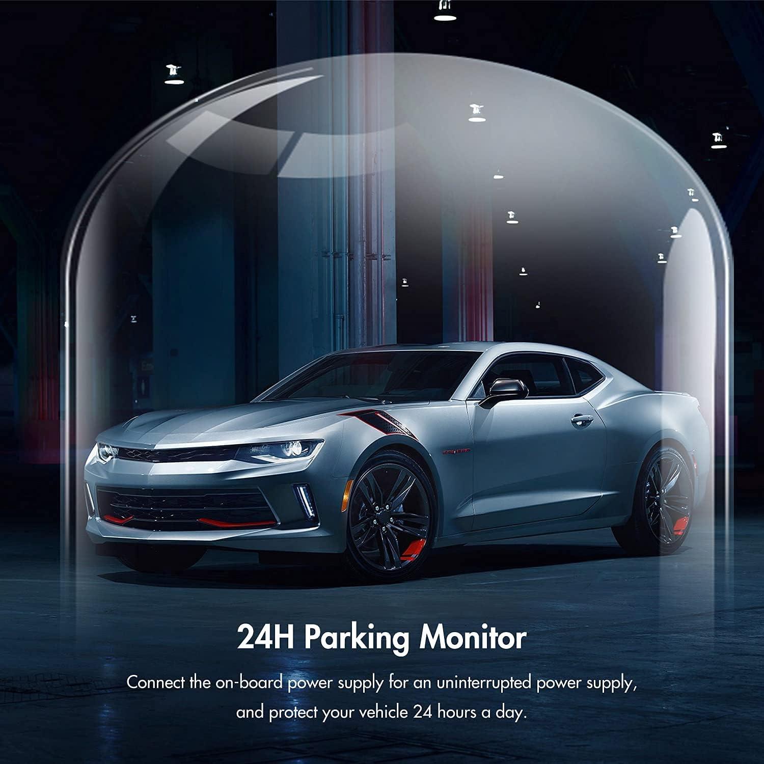 [24/7 Parking Mode* & G-Sensor] Enjoy round-the-clock protection with two parking modes: time-lapse recording for continuous low-bitrate monitoring and G-sensor mode that records when collision is detected. The car security camera with G-sensor automatically locks important clips, ensuring crucial evidence is safely preserved even while your vehicle is parked.(*Hardwire kit needed.)
