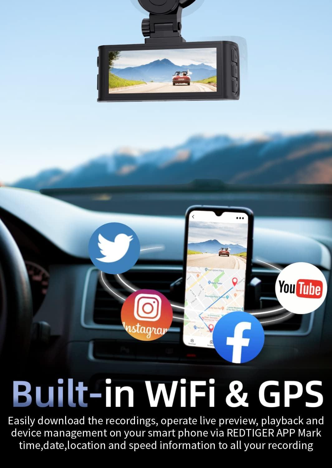 [Built-in 5.8GHz WiFi & Smart App] Connect your smartphone to the dashcam’s built-in 5.8GHz WiFi to enjoy ultra-fast downloads up to 20MB/s. Using Redtiger Cam app, you can preview, download, and replay videos in real time, check GPS ata (route, speed, and location), and manage settings effortlessly, making it simple to review footage and share important moments.